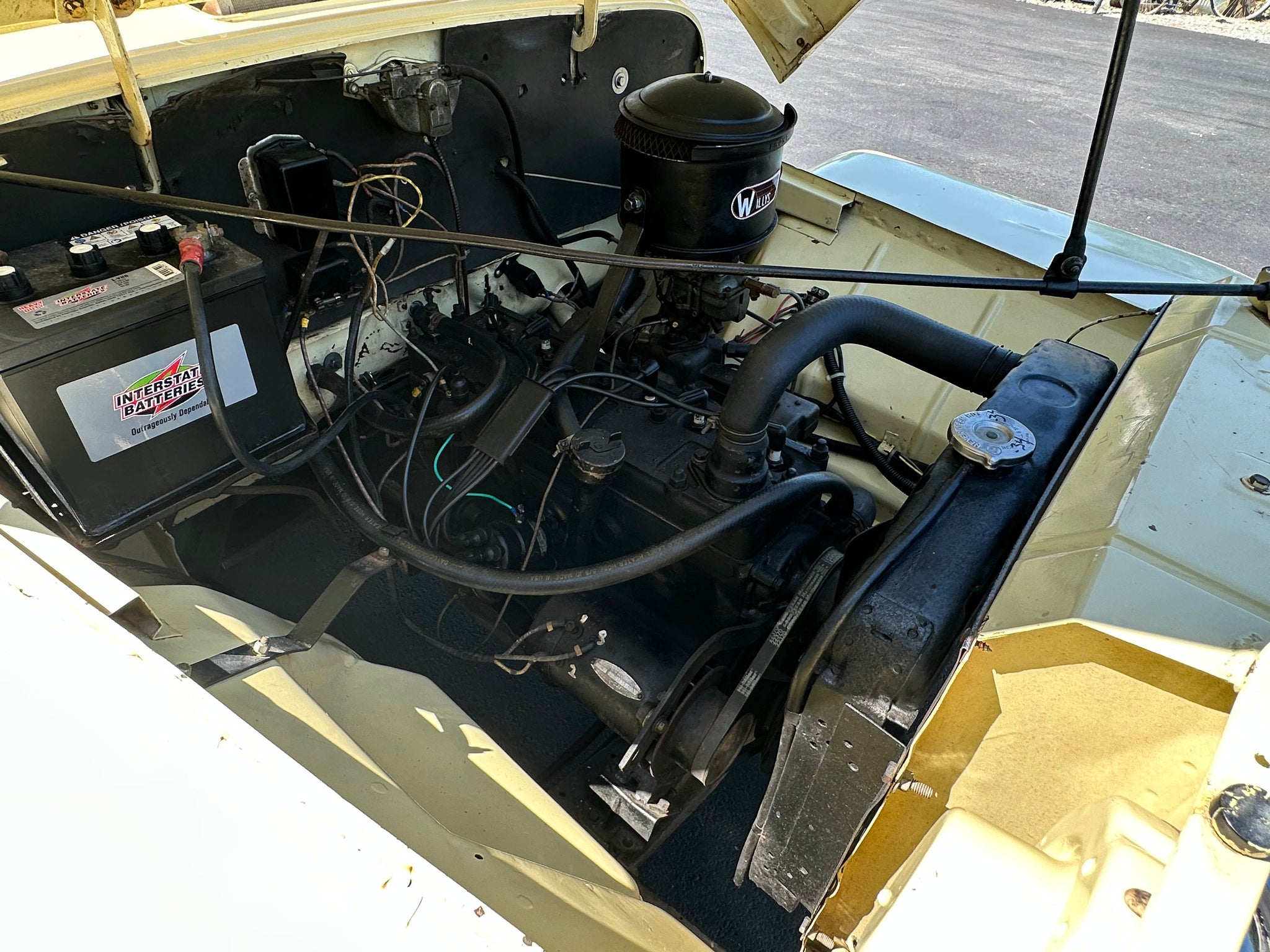 6 cylinder, 3 speed manual, factory radio and heater, 29k miles, a little paint loss, and only a very small amount of rust, super solid, same paint over 45 years!!!! Starts and runs!!!